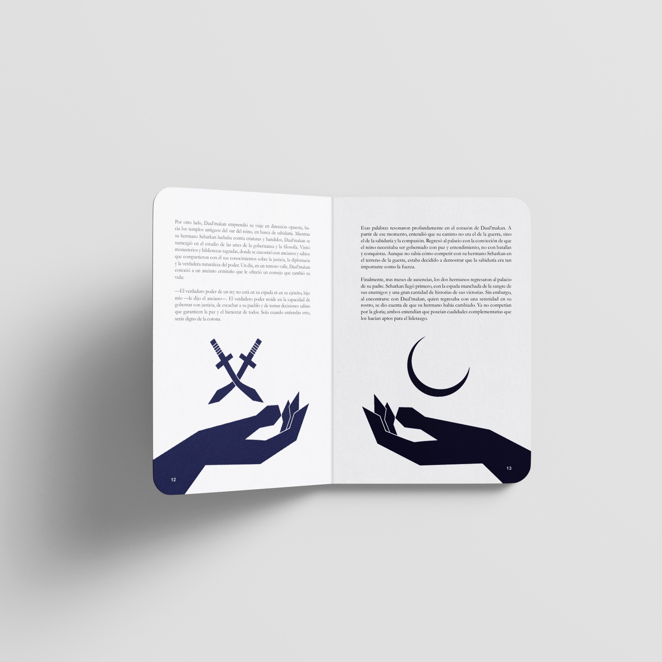Para este proyecto, se realizaron las ilustraciones de una adaptación del cuento «El rey Omar Al-Neman y de sus hijos Sherkan y Daul‘Makan«, procedente del libro «Las mil y una noches» de autor desconocido.