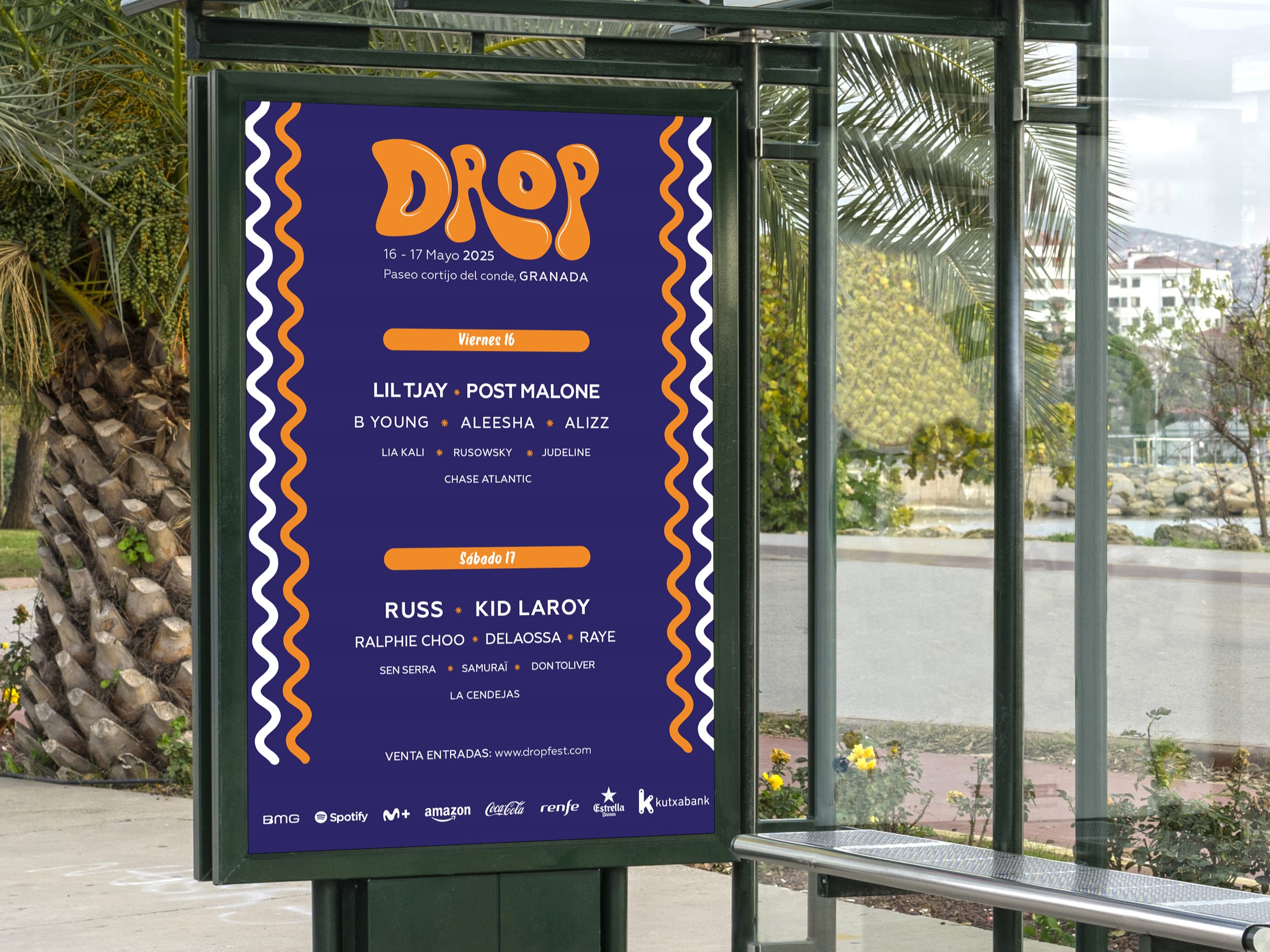Drop fest es un proyecto dedicado únicamente a crear la identidad completa de un festival, en este caso ficticio. El festival se basa en la música urbana y el pop alternativo.